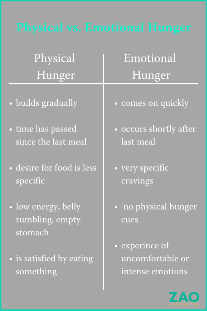 Sometimes, it can be difficult to distinguish between physical and emotional hunger so here´s an overview of signs to look out for: